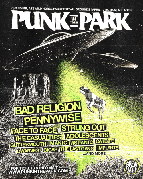 Punk In The Park returns to Arizona Saturday, April 12 for a day of music from punk rock legends along with craft beer tasting at Wild Horse Pass Festival Grounds in Chandler, Arizona, just outside Phoenix. Punk In The Park Arizona will feature sets from headliners Bad Religion, along with more fan favorites including Pennywise, Face To Face, Strung Out, The Casualties, Adolescents, Guttermouth, Manic Hispanic, Catbite, Dwarves, Cigar, The Last Gang, Implants and more to be announced. Punk In The Park will feature performances on two stages, with no overlapping set times.